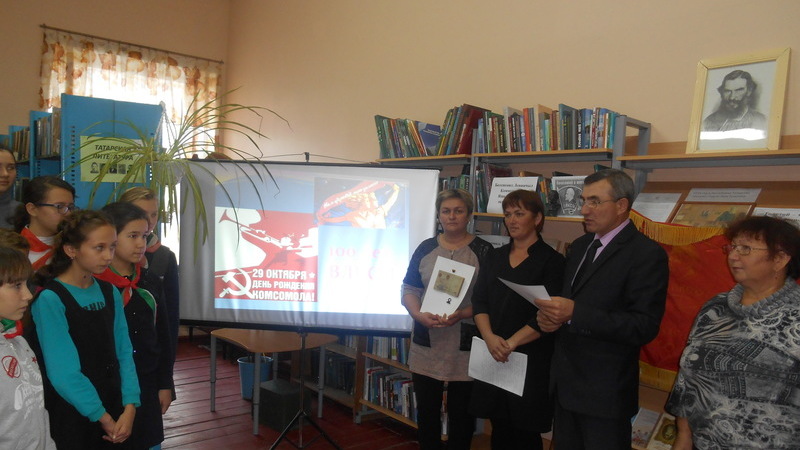 В Большецильнинской библиотеке совместно с работниками Дома культуры и преподавателями Большецильнинской средней школы прошел обзор презентации к 100-летию ВЛКСМ и встреча с бывшими комсомольцами села Халиулловым Ф.С. и Багаутдиновой Г.Р.