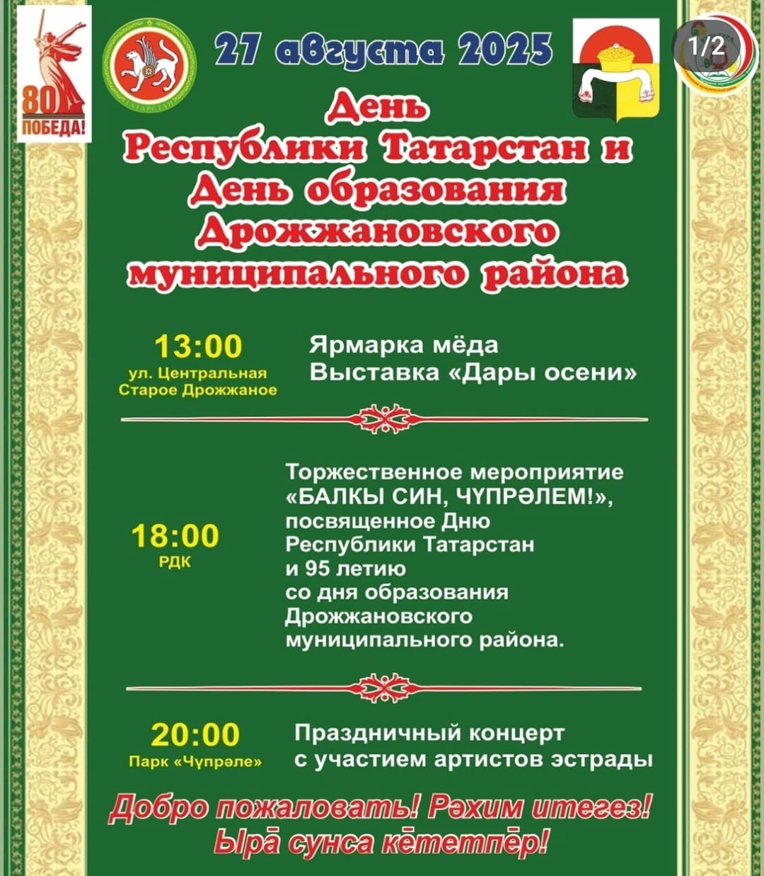 27 августа - День Республики Татарстан и День образования Дрожжановского муниципального района
