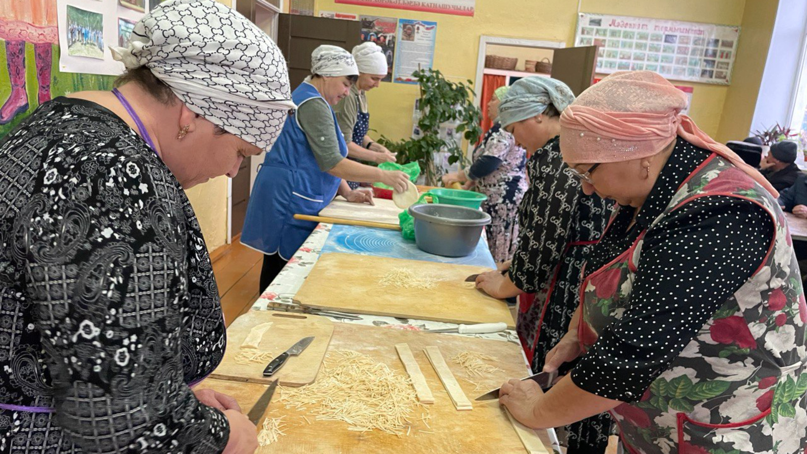 Работники Дома культуры, сельского поселения, социальной защиты и библиотеки организовали резку домашней лапши для наших военнослужащих, находящихся в зоне СВО.